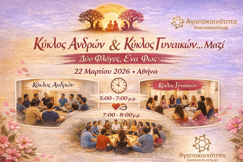 Σας προσκαλούμε σε μια ιδιαίτερη 3ωρη βιωματική συνεδρία, όπου άνδρες και γυναίκες θα συναντηθούν σε δύο